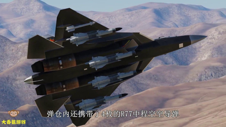 此时出动的这架苏57战斗机,外挂了4枚的KH31反辐射导弹,跟2枚的R73短距红外导弹,弹仓内还携带了4枚的R77中程空空导弹。这架苏57总计携带了10枚的导弹,开始超低空飞行快速的冲向了鹰酱所在的方向。